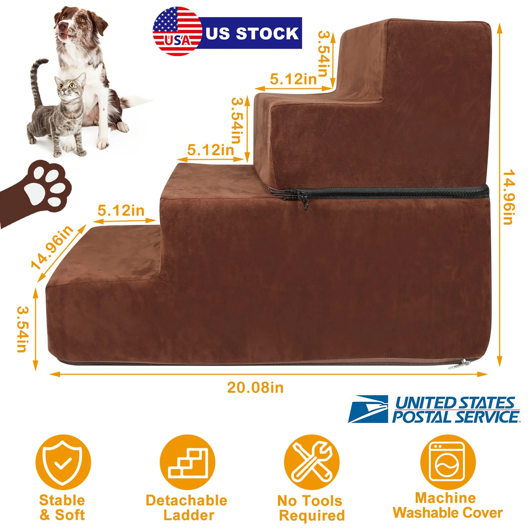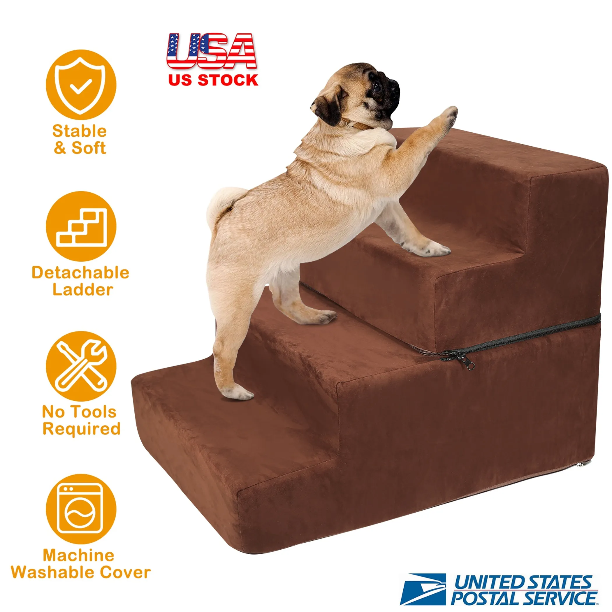Our 4-tier pet stair ladder gives the perfect way for pets that need it, and is good for medium or large size dog or for older dogs and cats that need a little extra help to get up to their favorite resting spot. Made of premium microsuede and 3.54in thickness of sponge, comfortable to touch and relieve the stress of pet joint. Anti-slip bottom protects your pet from falling off. It can be divided into two parts and suit for different height demands.