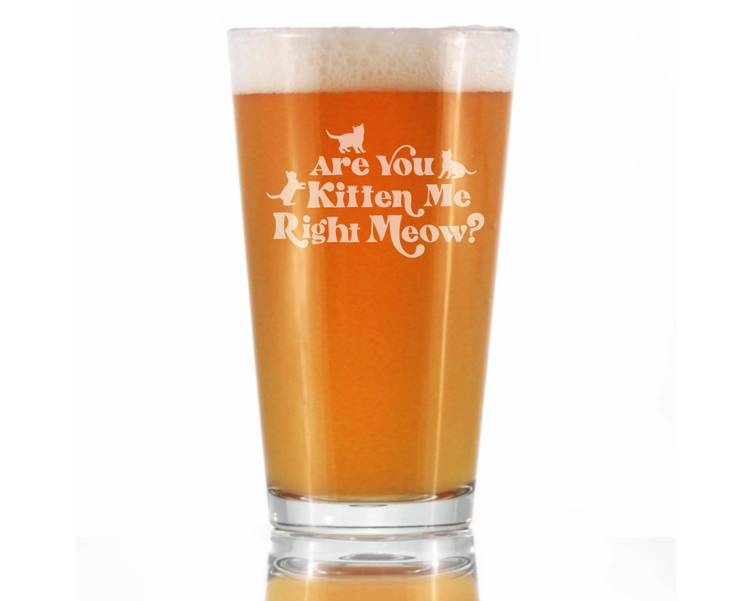 Are You Kitten Me Right Meow – Cute Funny Cat Pint Glass, 16 Ounces, Etched Sayings, Gift For Cat Lovers