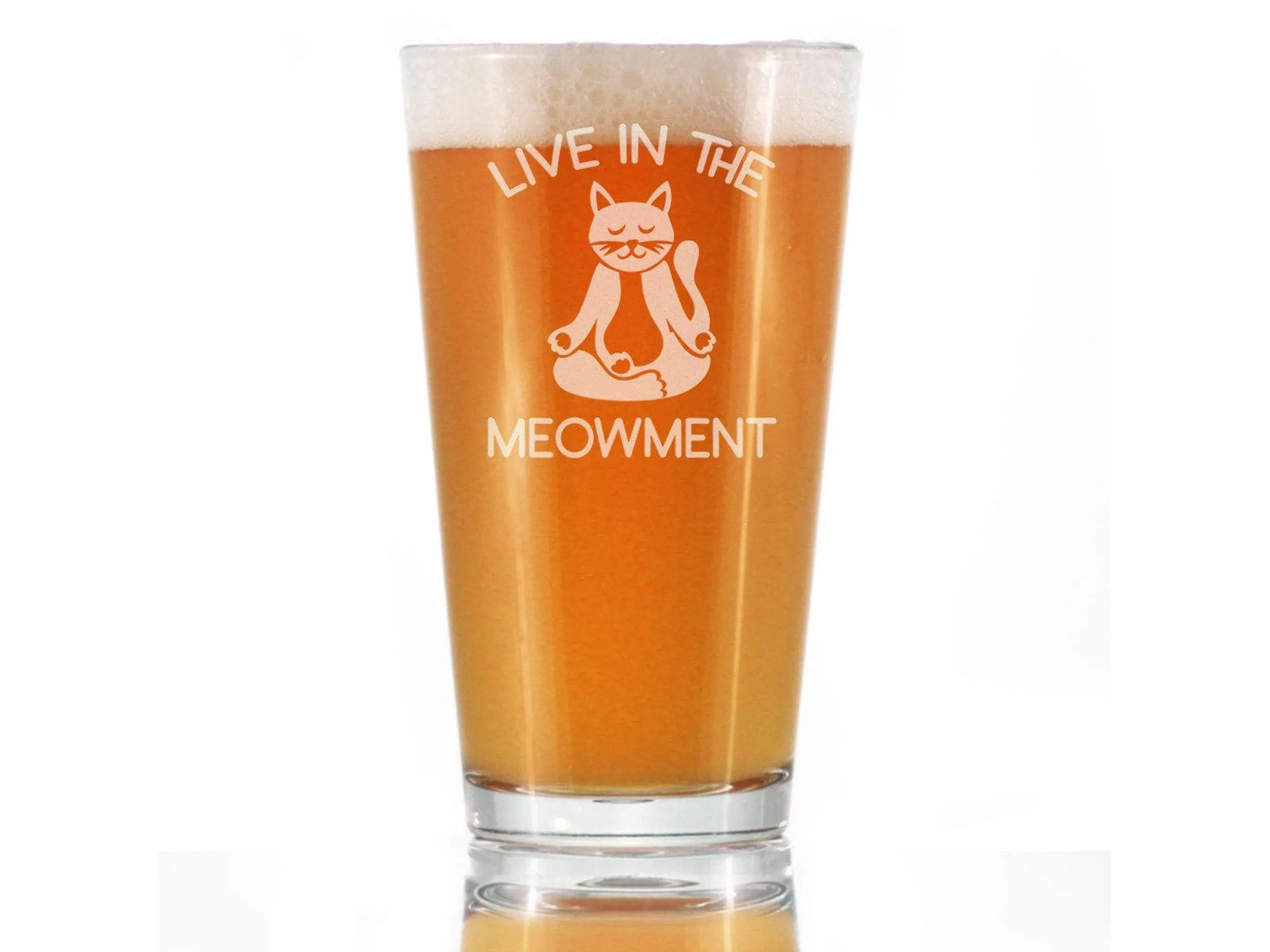 Live in Meowment Pint Glass for Beer – Cat Yoga Gifts