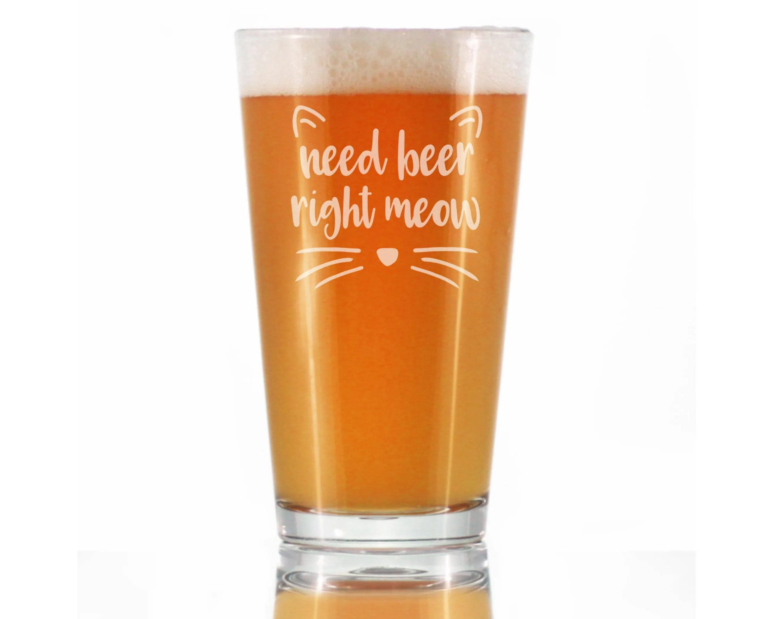 Need Beer Right Meow – Cute Funny Cat Pint Glass, 16 Ounces, Etched Sayings, Gift
